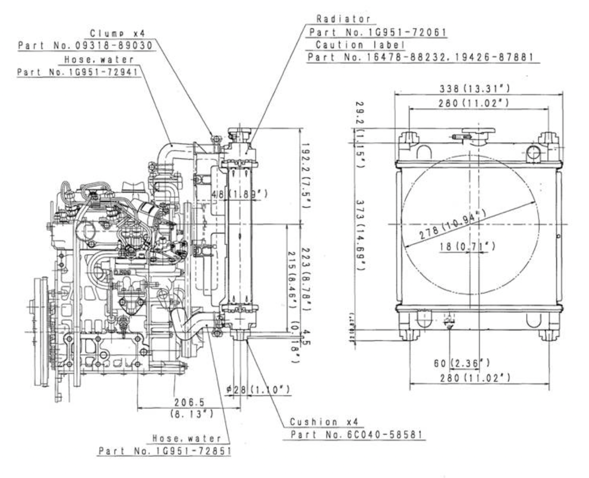 Chladič Kubota Z482, D722, D902 Pro aplikace s motorem kubota řady Supermini 02, v bagrech , demprech, nakladačích, centrálách atd.