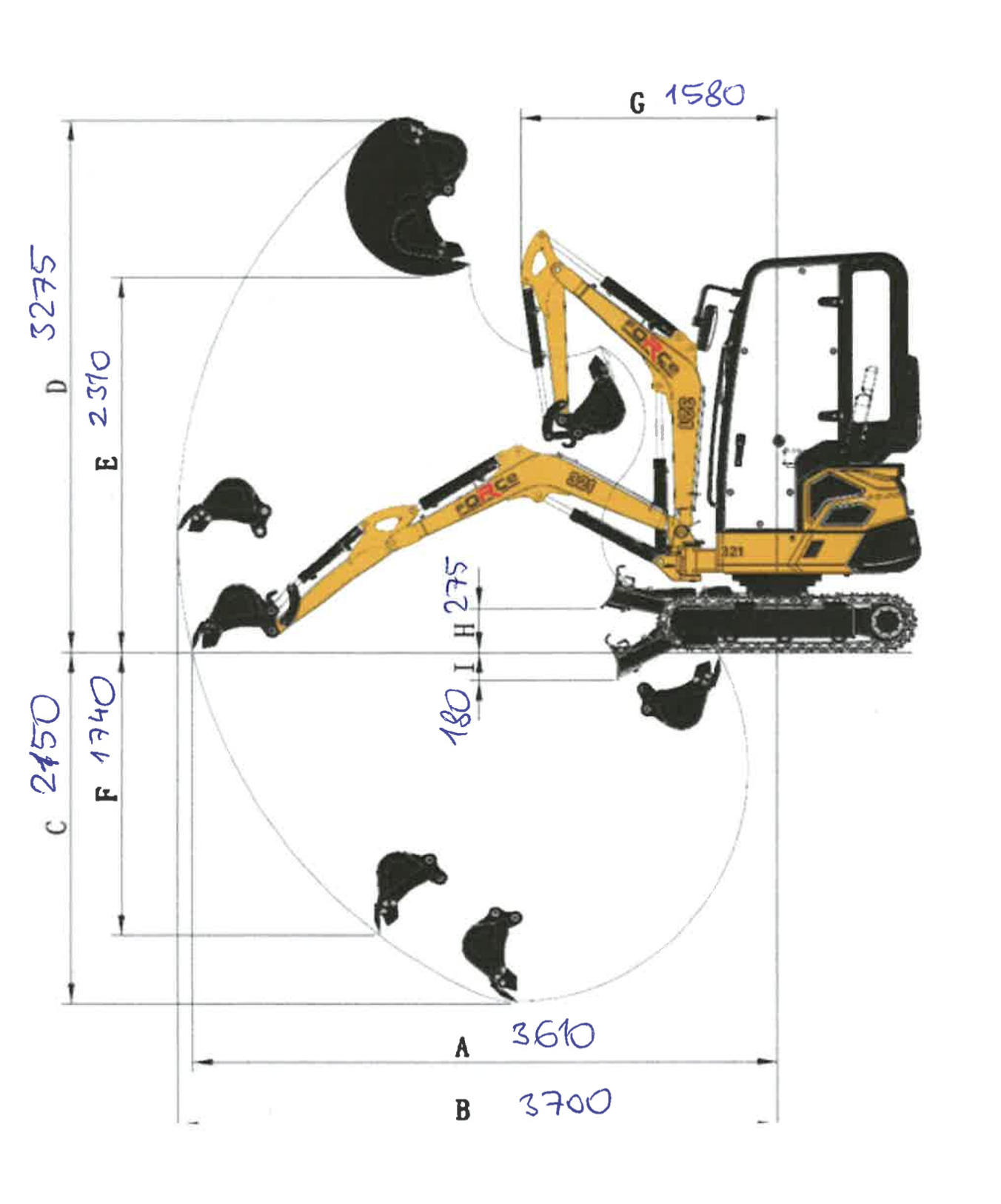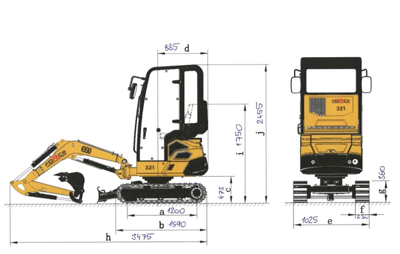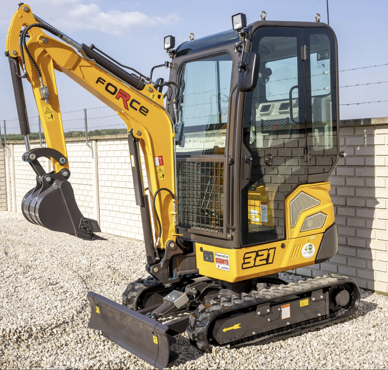 FORCE 321 - Minibagr 1,9 t, s vodou chlazeným tříválcem Yanmar, dvojrychlostním pojezdem a s vytápěnou kabinou