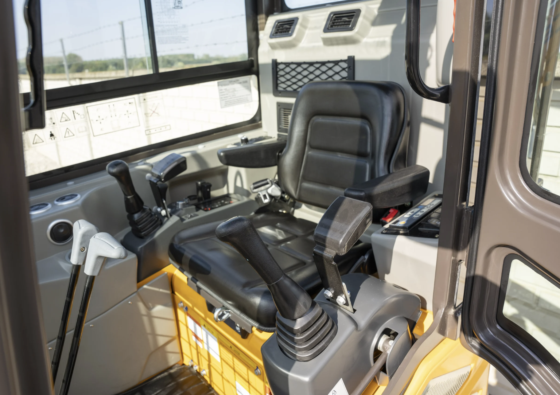 s 3válcovým, vodou chlazeným, moderním motorem Yanmar, nastavením rozchodu pásů, lámacím výložníkem za hezkou cenu. Váží 1 900 kilogramů.