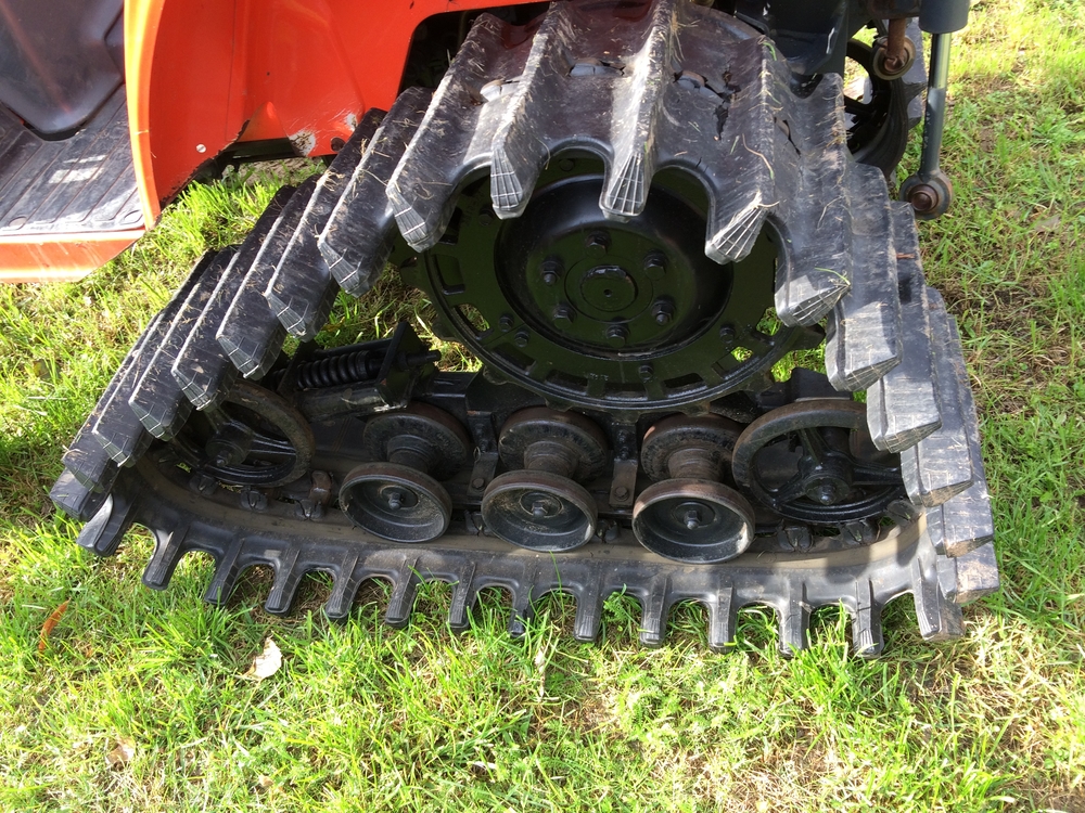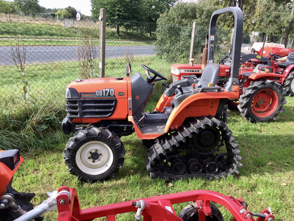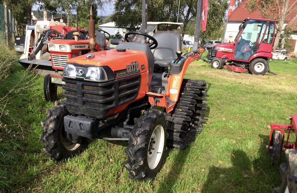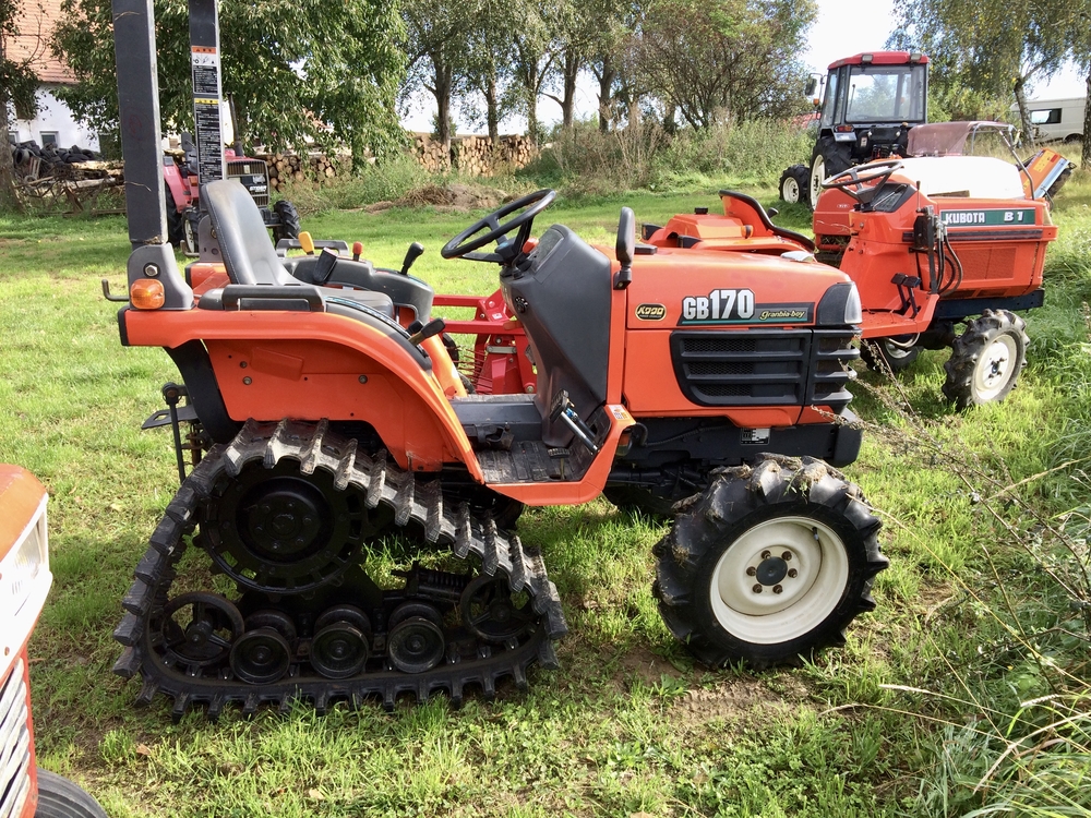 Tříválcová Kubota GB170 s výkonem 17 koní. Podvozek s trakčními pásy vzadu má dobrou stabilitu a trakci v měkkém podkladu, louky , mokřady, při úpravě pozemků a nivelaci, smykování luk a pastvin poškozených černou zvěří.