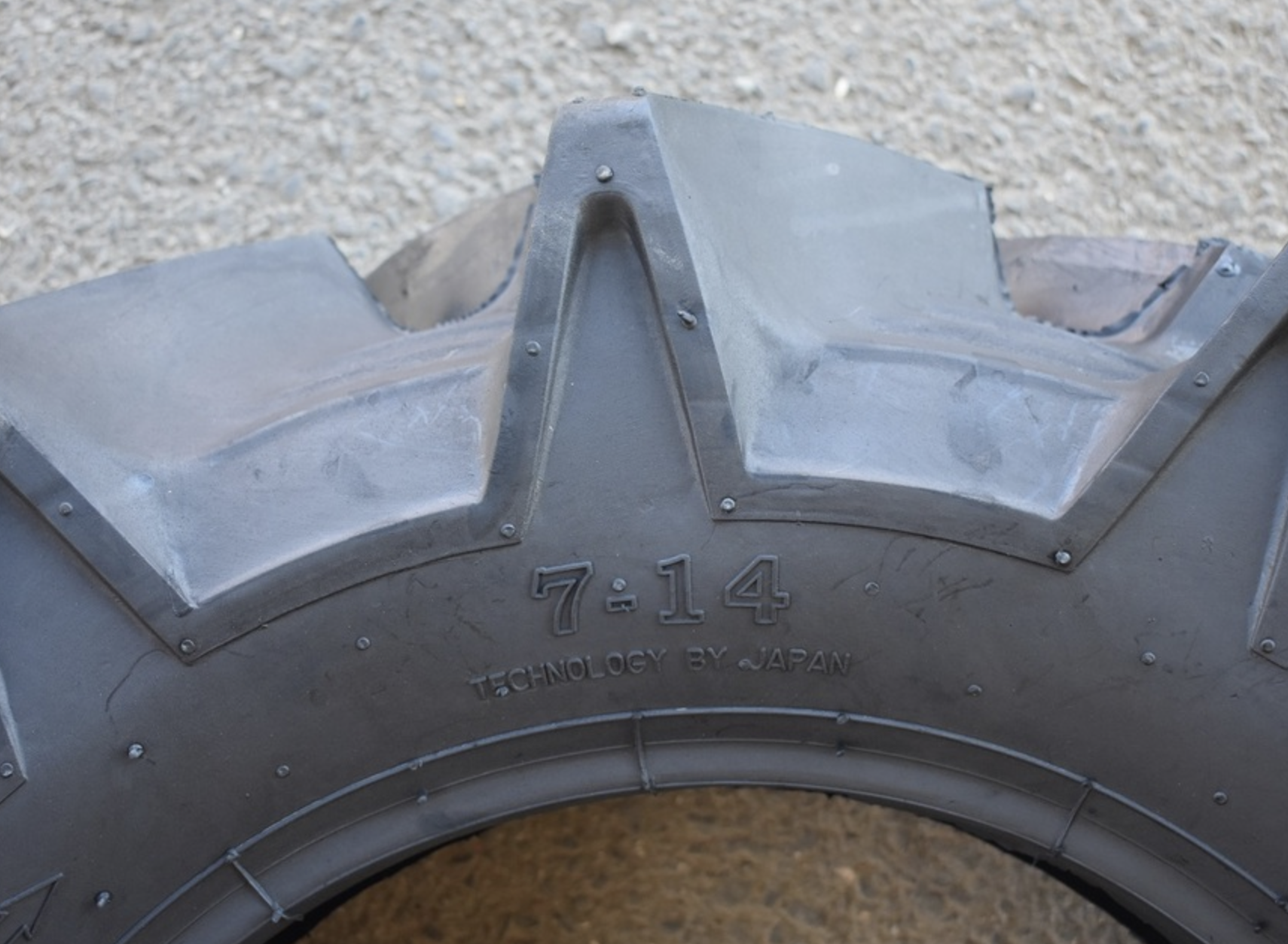 Zadní „rýžová“ pneumatika vhodná pro japonské traktory 10&11HP, jako jsou Iseki TX1000, TX1100, Kubota B5000, B5001, B6000, B6001, Mitsubishi D1100, Yanmar YM1100, YM1101.