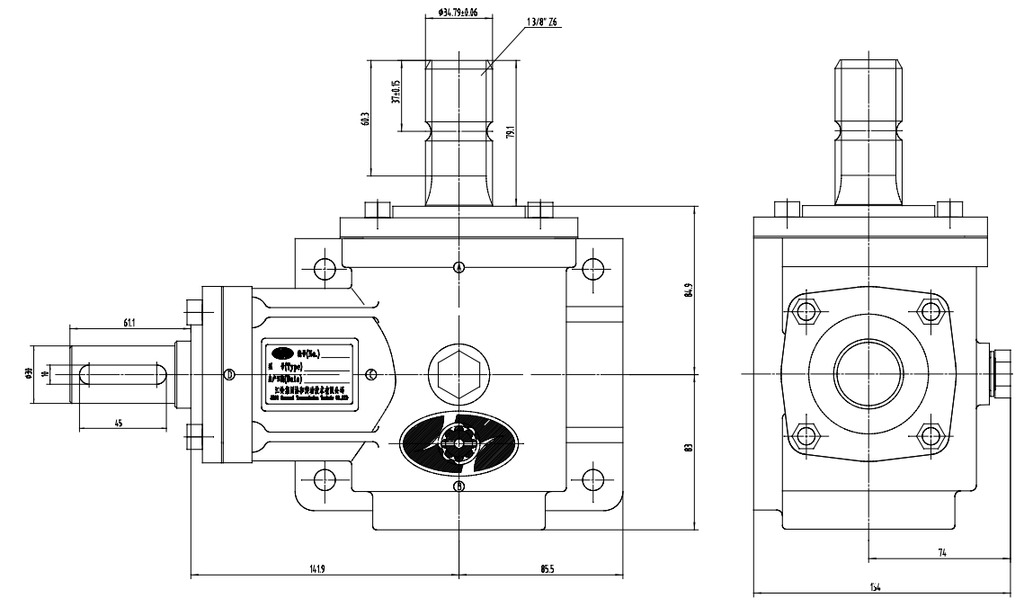 Vstupní hřídel: 1-3/8" 6 drážkování