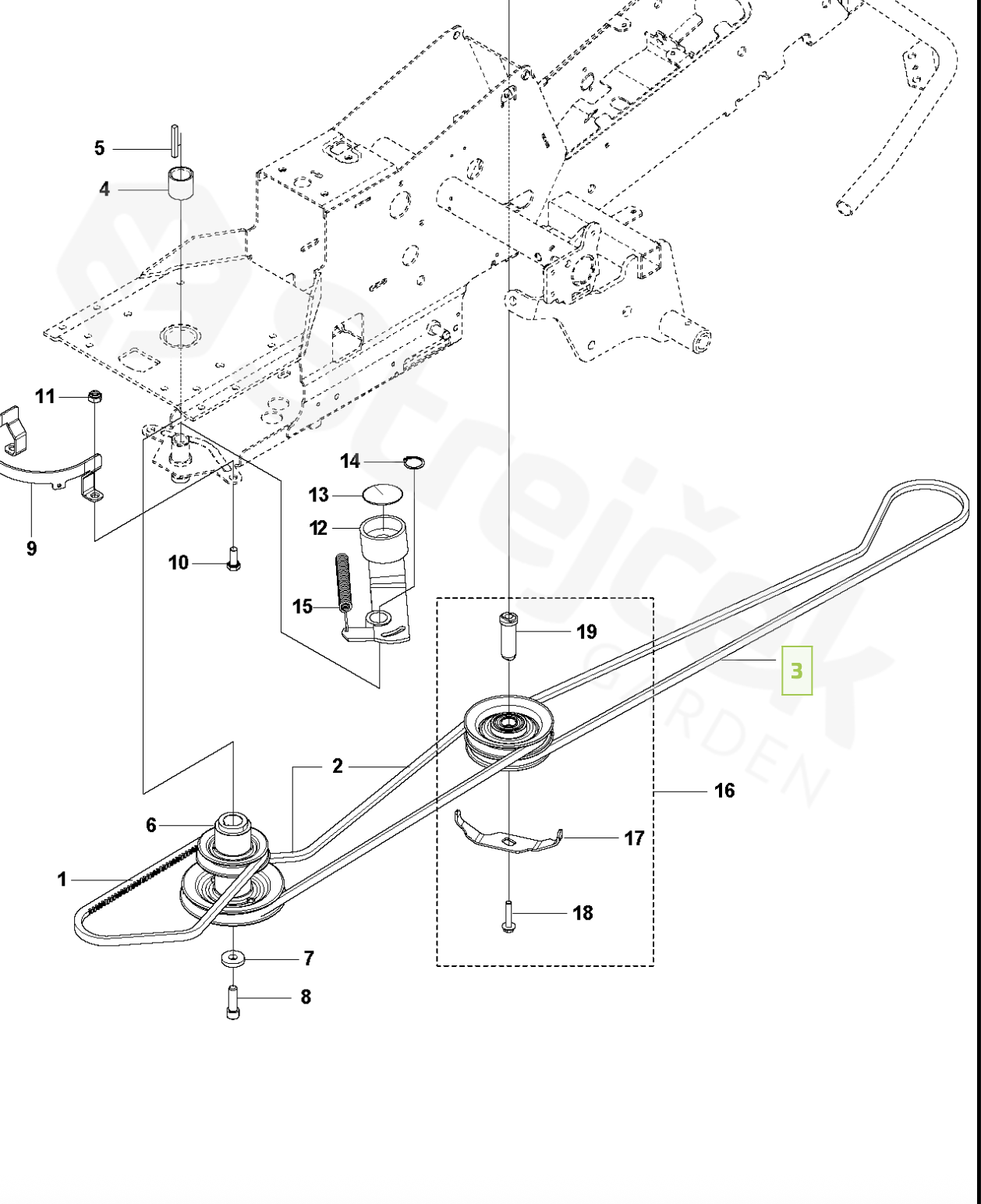 Řemen žacího ústrojí přední Husquarna R213, R214, R216